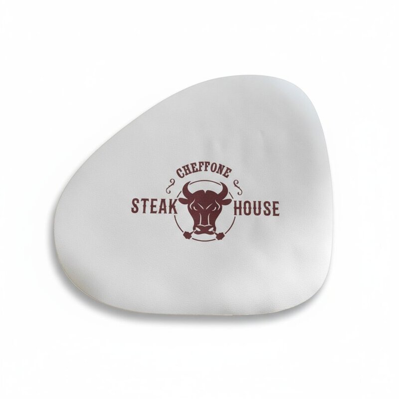 Tovaglietta in ecopelle bianca, personalizzata con stampa a colori, ideale per ristoranti, bistrot e locali che desiderano un’immagine curata e distintiva.